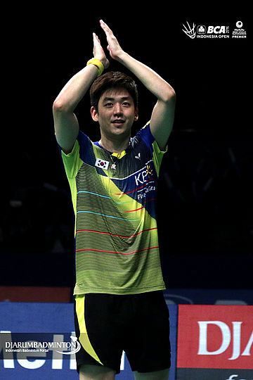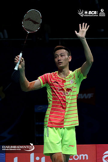 Zhang Nan (Tiongkok) memberikan apresiasi kepada seluruh supporter yang memadati Istora Senayan, Jakarta