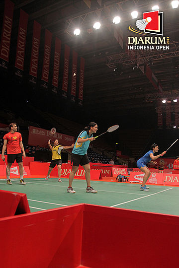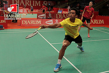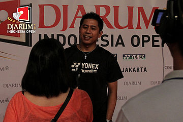 Sony Dwi Kuncoro (Indonesia) saat melakukan pemanasan di pinggir lapangan.