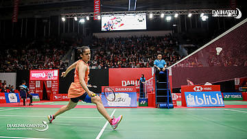 Saina NEHWAL (India) bersiap menggapai pengembalian