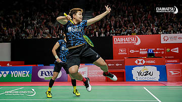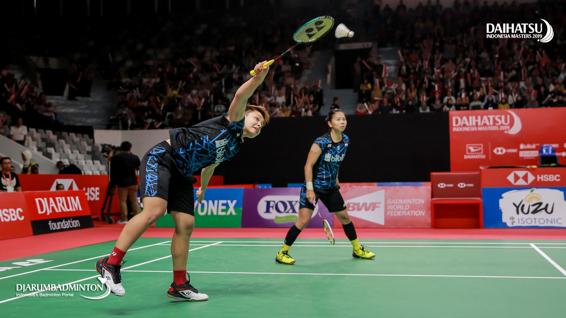 Greysia POLII/Apriyani RAHAYU (Indonesia) menyambut serangan