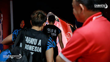 Greysia POLII/Apriyani RAHAYU (Indonesia) bersiap memasuki arena pertandingan