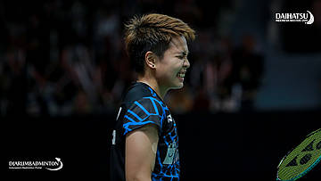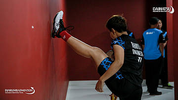 Apriyani RAHAYU (Indonesia) melakukan peregangan