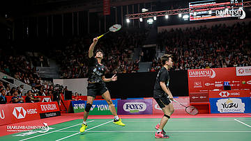 Takuro HOKI/Wakana NAGAHARA (Japan) menyambar pengembalian