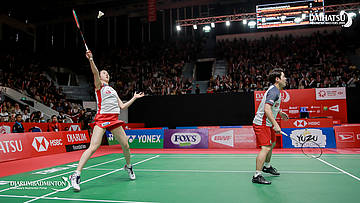 Tontowi AHMAD/Liliyana NATSIR (Indonesia) bersiap menyambut serangan