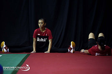 Febriana Dwi Puji/Ribka Sugiarto (Indonesia) Melakukan Pendinginan Usai Bertanding