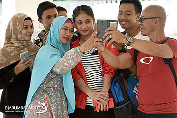 Liliyana Natsir (Indonesia) Melakukan Selfie Bersama Sejumlah Penggemarnya