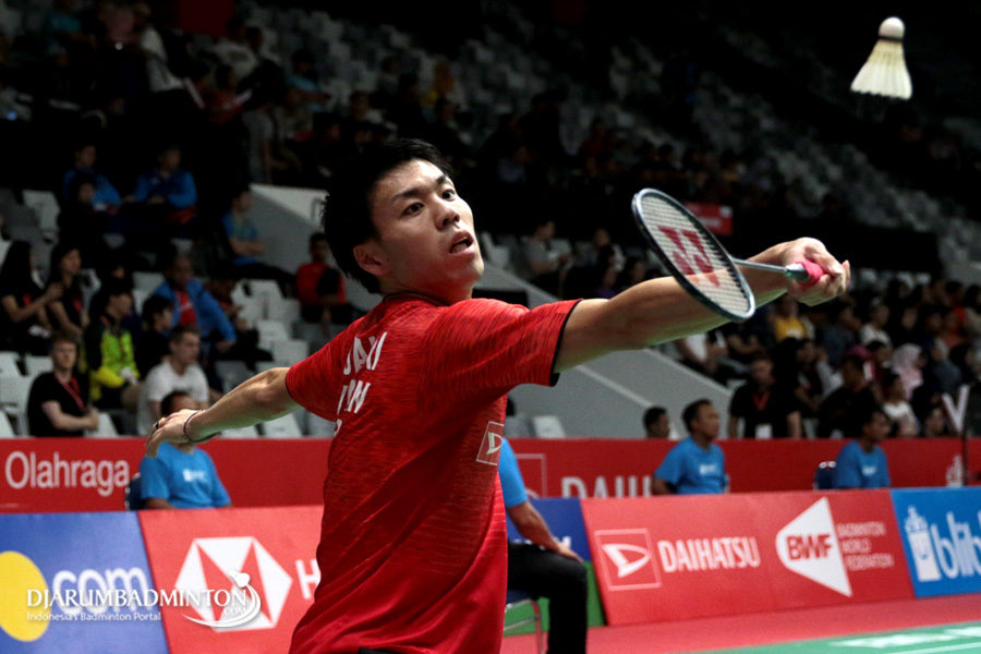 Kazumasa Sakai (Jepang) Mengembalikan Shuttlecock
