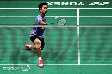 Anthony Sinisuka Ginting (Indonesia) Mengembalikan Shuttlecock