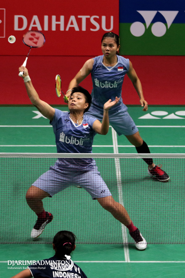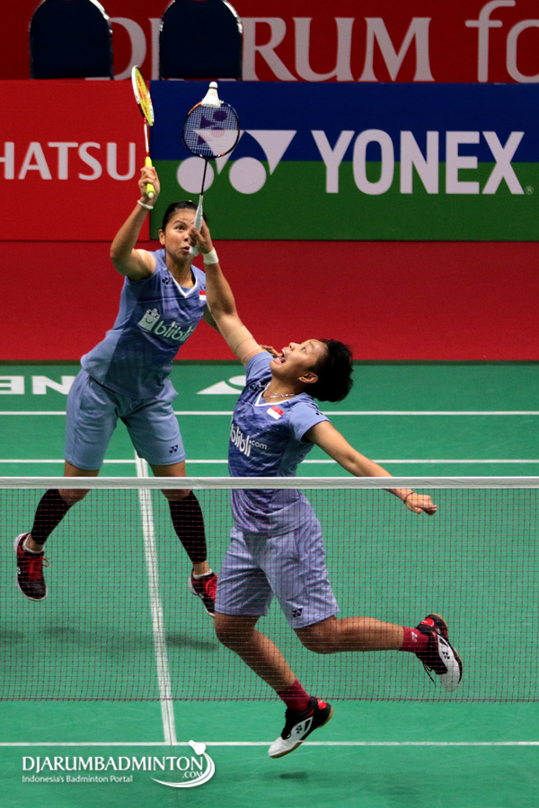Apriyani Rahayu/Greysia Polii (Indonesia) Menghadang Serangan
