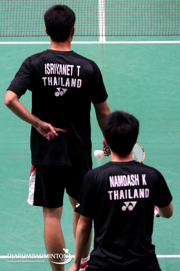 Tinn Isriyanet/Kittisak Namdash (Thailand) Memberikan Isyarat Taktik Penyerangan