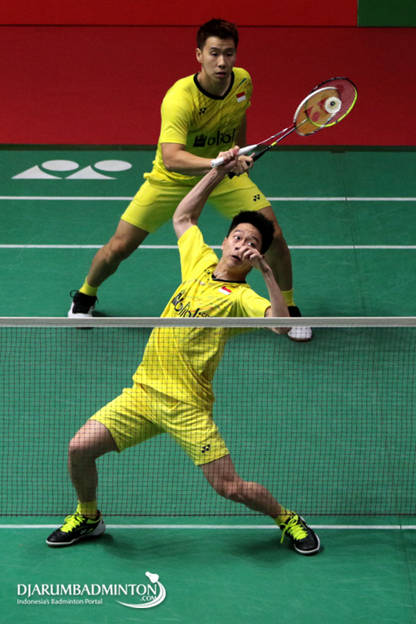 Kevin Sanjaya Sukamuljo/Marcus Fernaldi Gideon (Indonesia) Menghadang Pengembalian