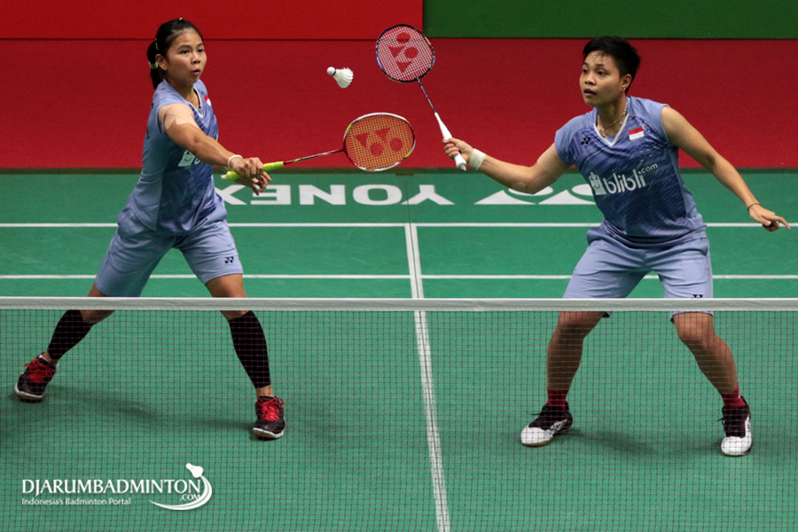 Apriyani Rahayu/Greysia Polii (Indonesia) Bersiap Menyambar Pengembalian Tanggung