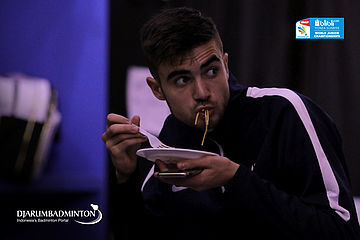 Salah Satu Atlet France Saat Mencicipi Hidangan Di Player Lounge