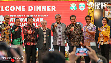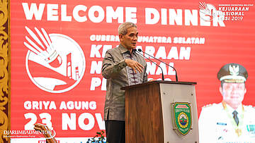 Suasana acara welcome Dinner GUBERNUR SUMATERA SELATAN KEJURNAS PBSI 2019