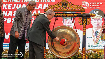 Pembukaan GUBERNUR SUMATERA SELATAN KEJURNAS PBSI 2019 oleh Asisten II Setda Sumsel, Yohanes H. Toruan