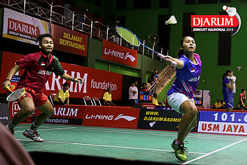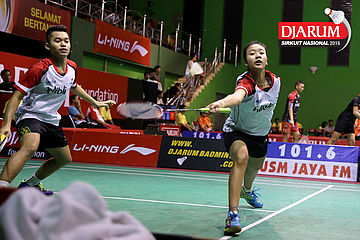 Lukhi Apri/Ririn Amelia (Djarum Kudus) Menyambut Pengembalian.