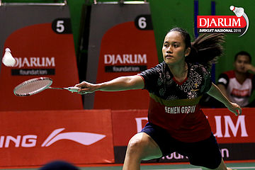 Febby Angguni (Pertamina Fastron) Mengembalikan Shuttlecock.