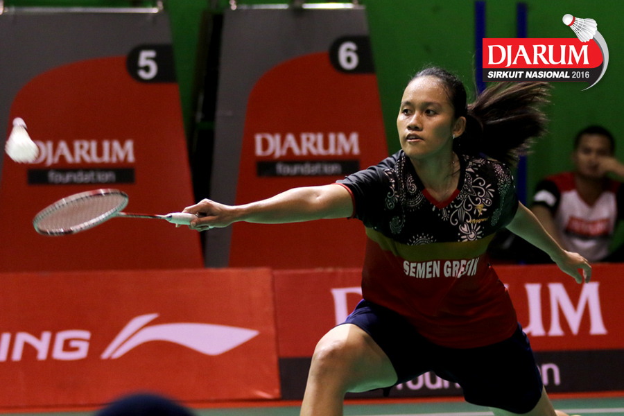 Aprilia Yusandari (Semen Gresik) Mengembalikan Shuttlecock.