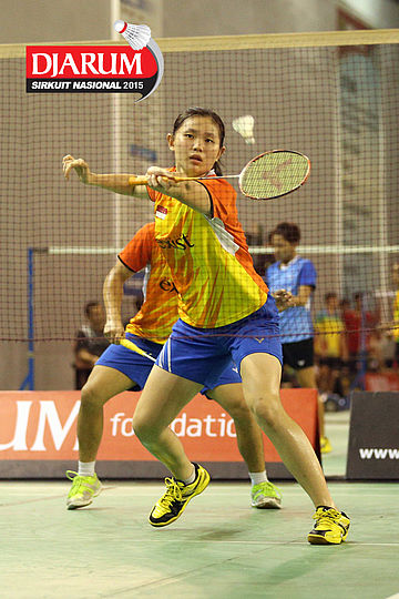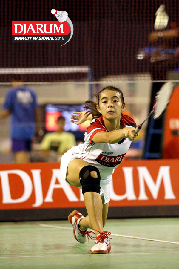 Silvi Wulandari (Djarum Kudus) menyambut pengembalian dari Choirunnisa (Mutiara Cardinal).