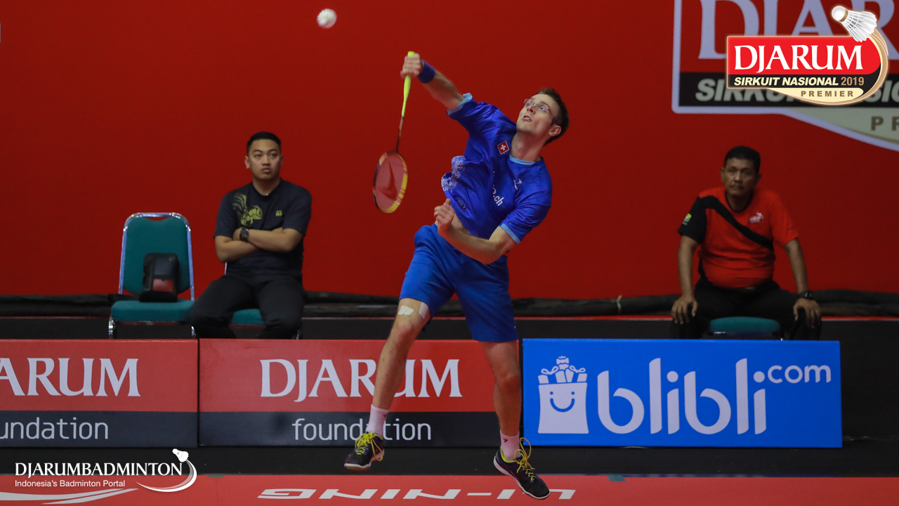 Dominic Jan Tripet (Swiszterland) menyambut shuttlecock