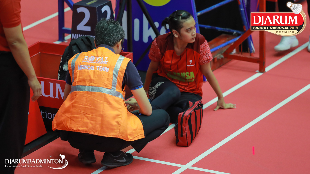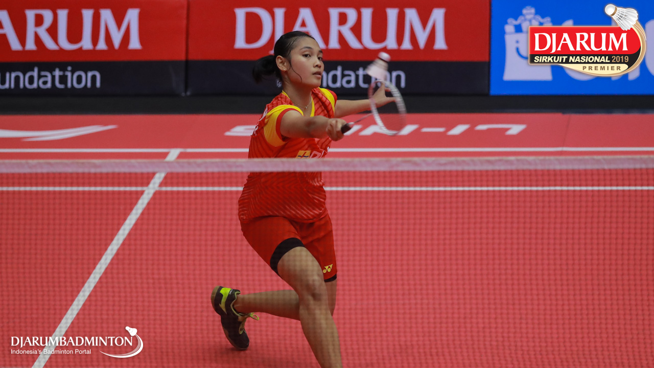 Rizma Anestasy Violeta (Sangkuriang Graha Sarana PLN Bandung) mengembalikan shuttlecock