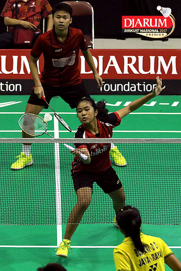 M. Nendi Novantino/Nahla Aufa Dhia Ulhaq (Jaya Raya) Mengembalikan Shuttlecock