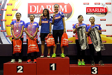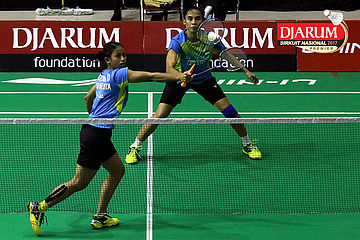 Dian Fitriani/Nadya Melati (Pertamina Fastron) Mengembalikan Shuttlecock