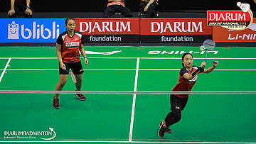 Amalia Cahaya Pratiwi+Febriana Dwipuji Kusuma (Pelatnas) bersiap menyambut shuttlecock