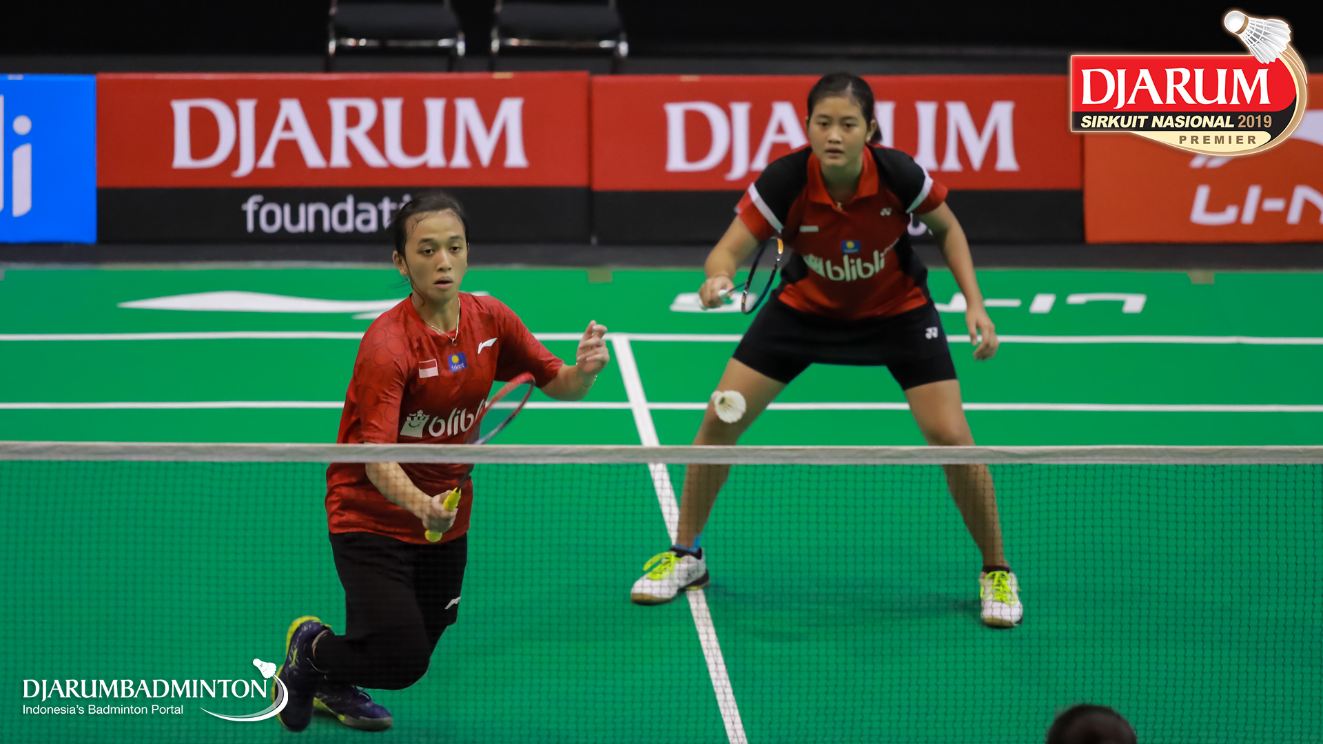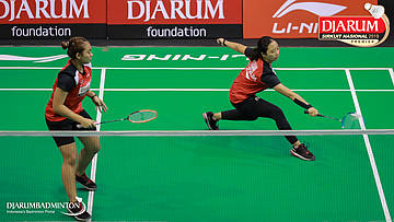 Berliona Alma Pradisa+Sintia Dewi Yuliani (PB Djarum, Kudus) berusaha mengembalikan serangan