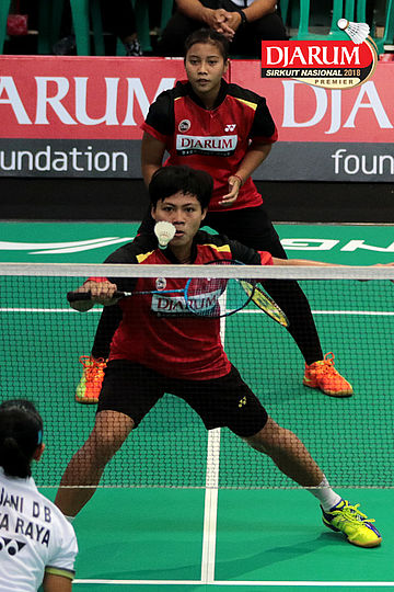 Muzammi Elya/Yely Diyunsari (PB Djarum Kudus) Melepaskan Serangan
