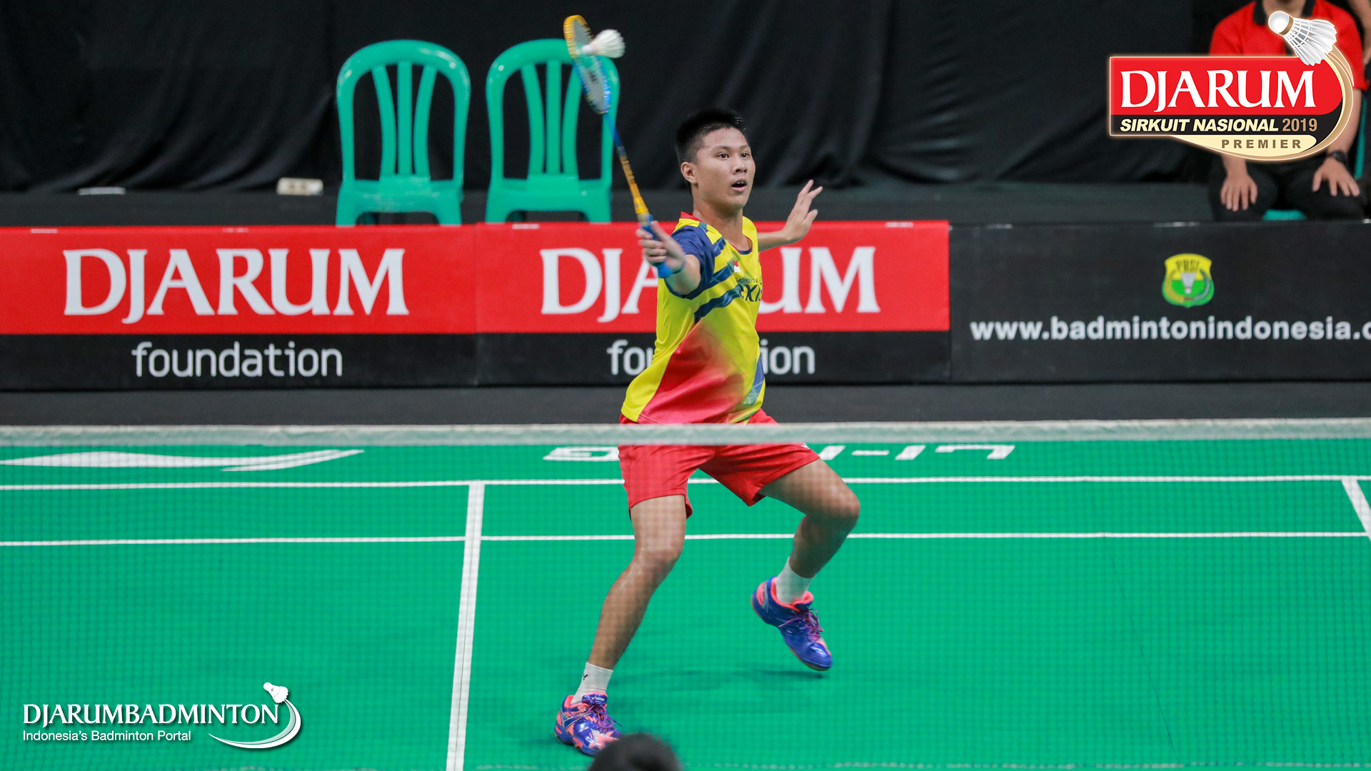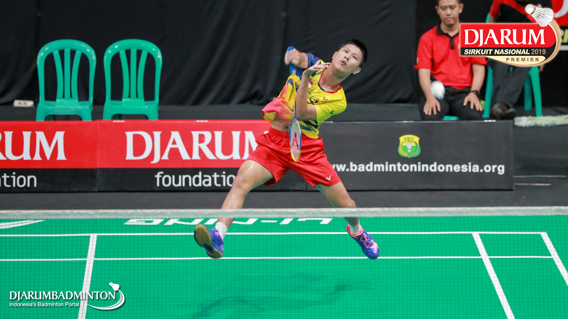 Tegar Sulistio (Exist Badminton Club) melepaskan serangan