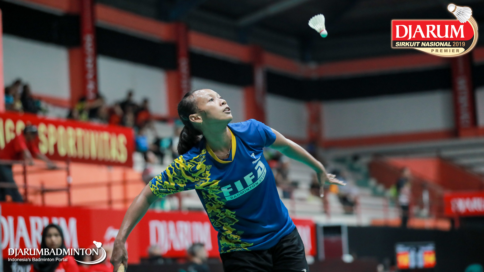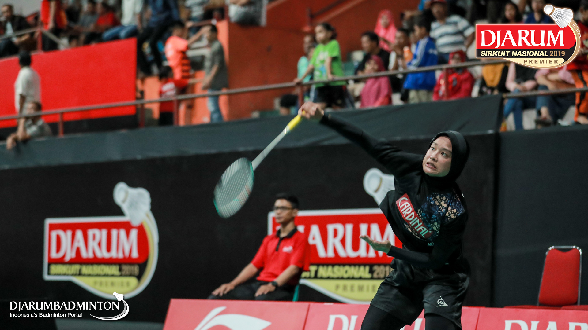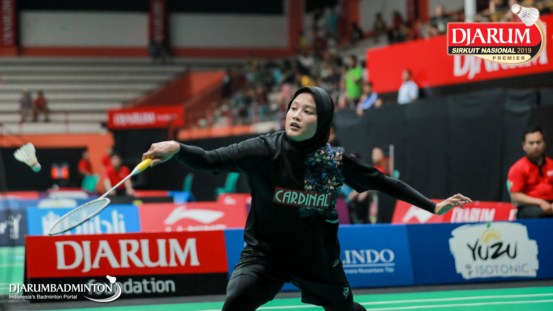 Hanna Ramadini (Mutiara Cardinal, Bandung) menyambut shuttlecock