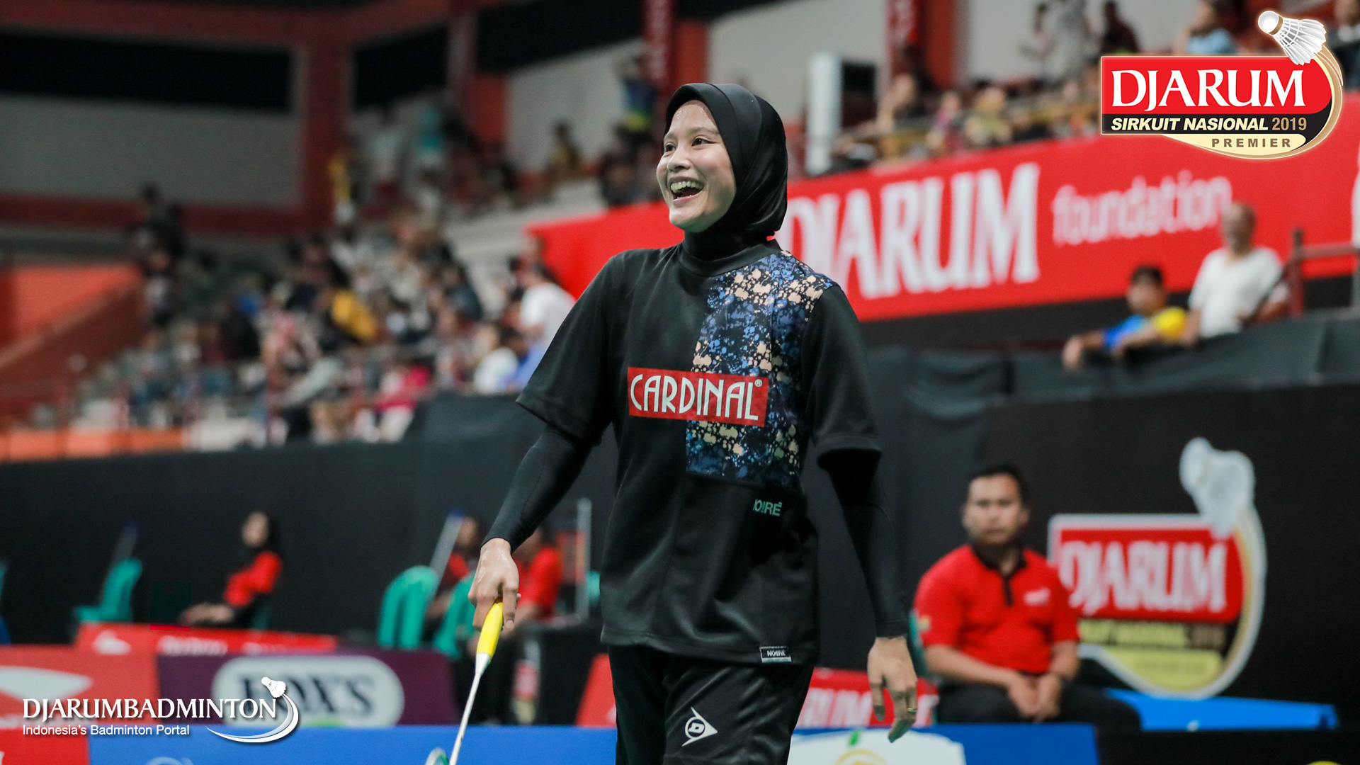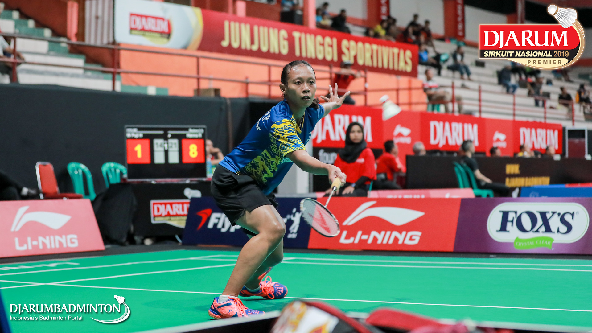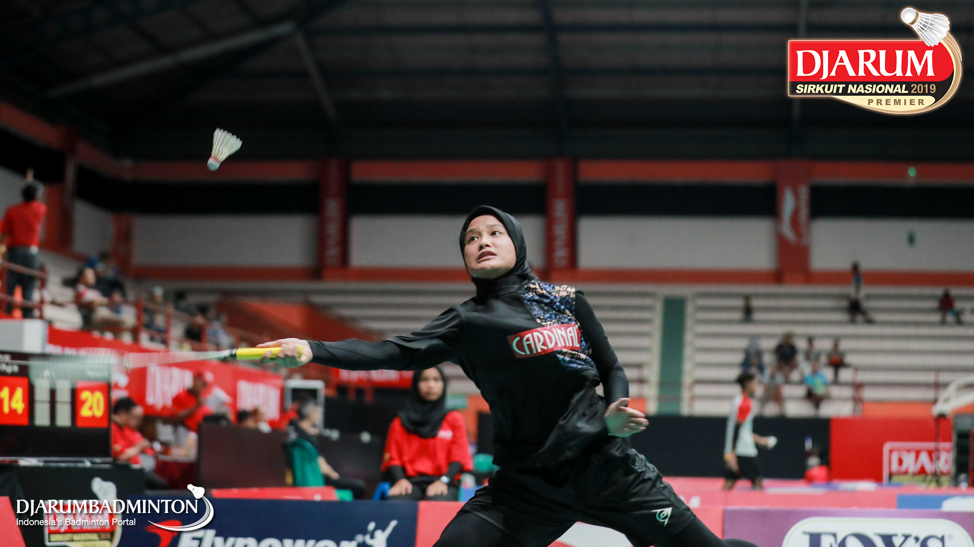Hanna Ramadini (Mutiara Cardinal, Bandung) menyambut shuttlecock