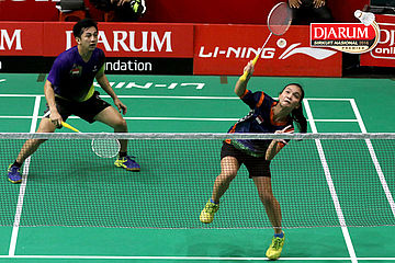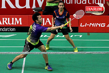 Fernando Kurniawan/Dian Fitriani (Djarum Kudus/Pertamina Fastron) Menghadang Serangan.