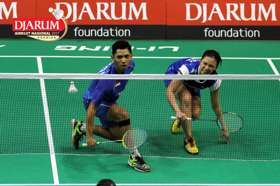 Fiesal Wiranto/Annisya Widya Permatasari (SGS PLN/Mutiara Cardinal) Mengembalikan Shuttlecock