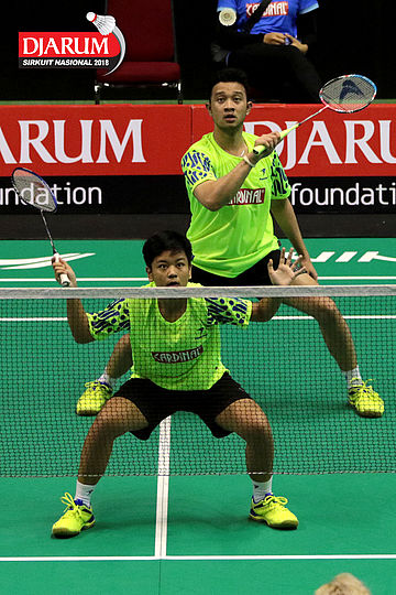 Riky Widianto/Masita Mahmudin (Tjakrindo Masters/Jaya Raya Jakarta) Mengembalikan Shuttlecock