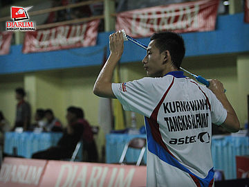 Hardianto Kurniawan (Tangkas Alfamart) siap-siap memberikan serve