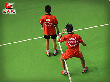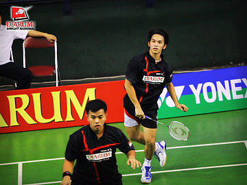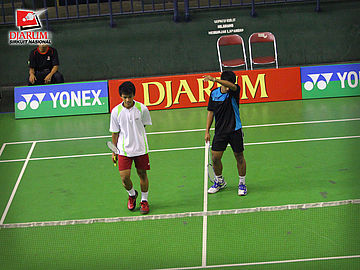 Fernando-Wifqi (PB. Djarum) setelah membalas kok lawan