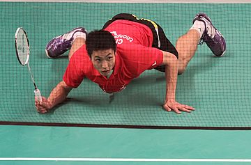 Aksi Kevin dalam menyelamatkan shuttlecock