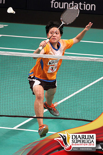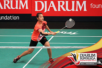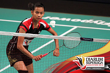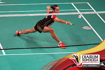 Sarita Suwannakitborihan (Granular Thailand) bersiap menyambut pengembalian dari Maria Febe (Djarum Kudus).