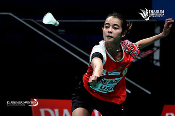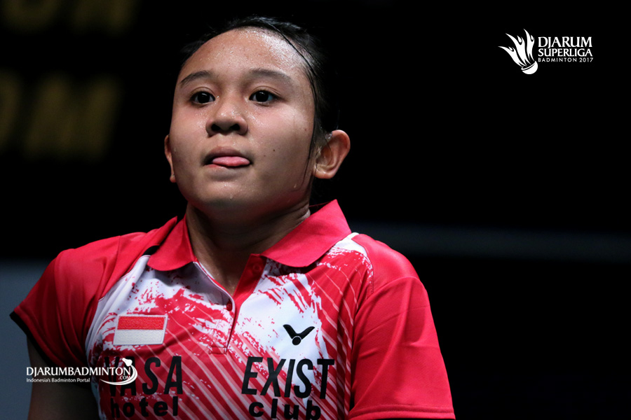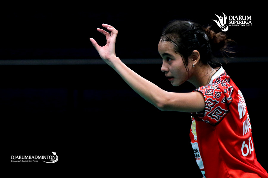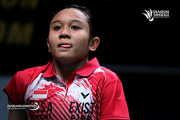 Silvi Wulandari (USM Blibli.com) meminta pergantian shuttlecock.