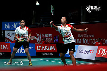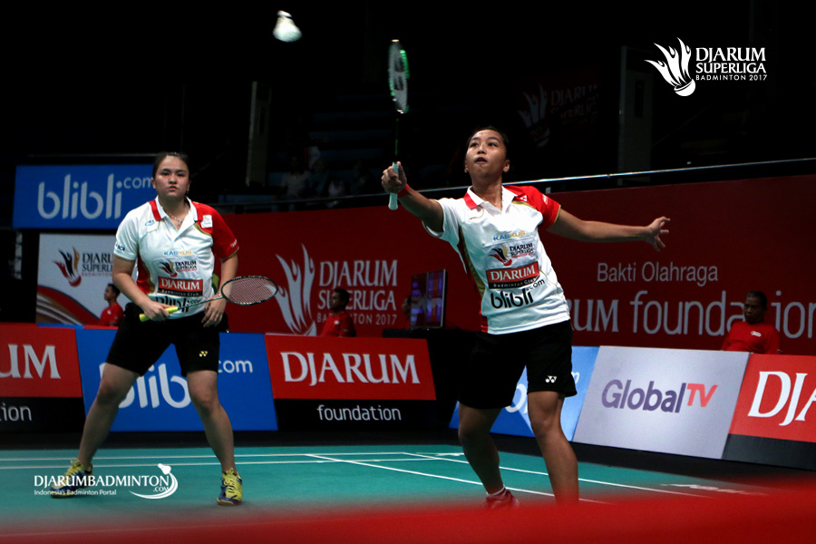 Melati Daeva/Rosyita Eka Putri (PB Djarum) bersiap menghadang serangan.