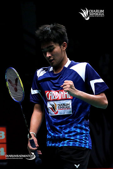 Panji Ahmad (PB Mutiara Cardinal) mengembalikan shuttlecock.