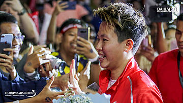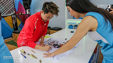 Liliyana Natsir menandatangani kaos bertema ferwell event nya