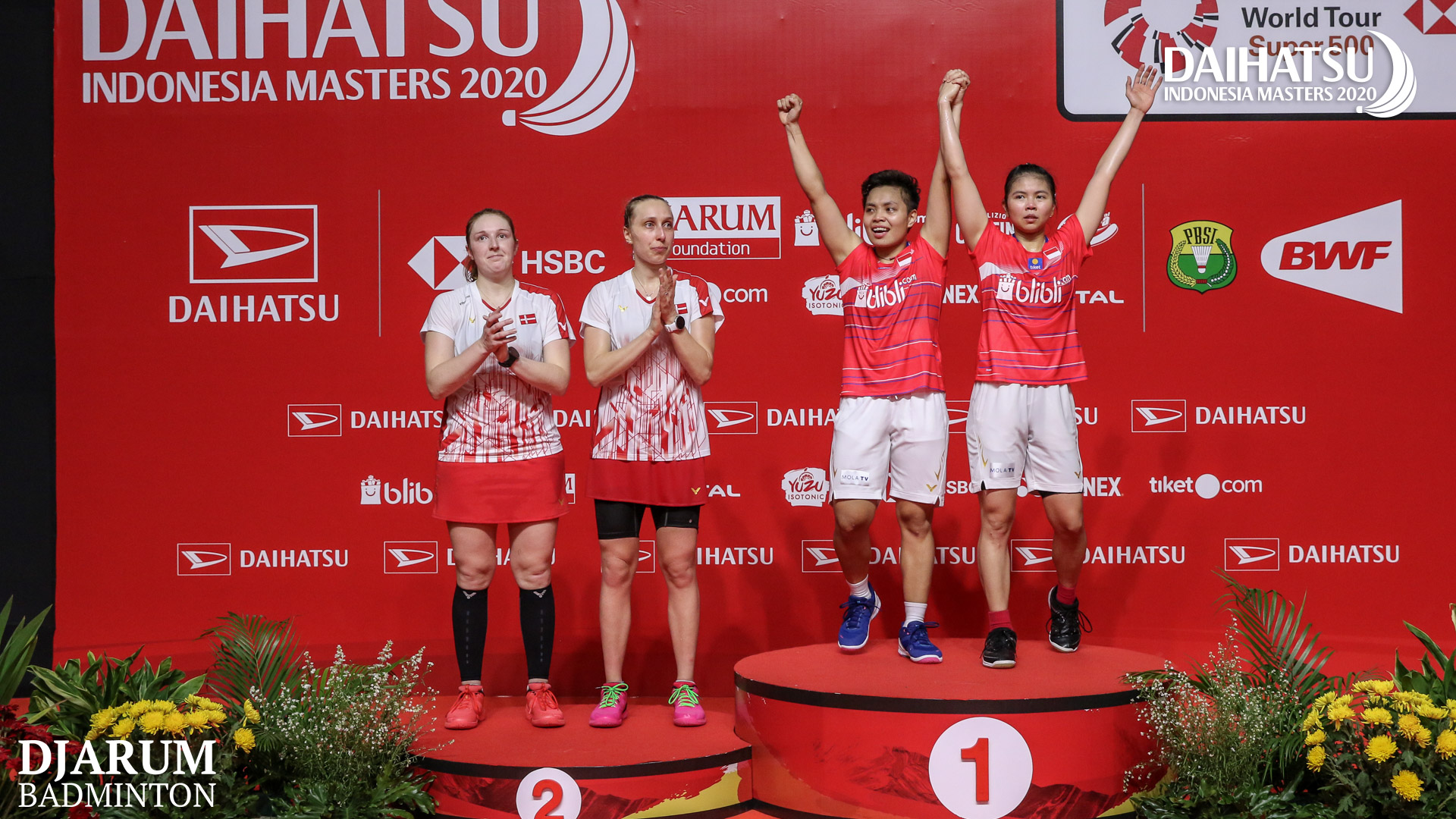 Podium Runner Up Maiken FRUERGAARD/Sara THYGESEN (Denmark) dan Juara Ganda Putri Greysia POLII/Apriyani RAHAYU (Indonesia) Daihatsu Indonesia Masters 2020