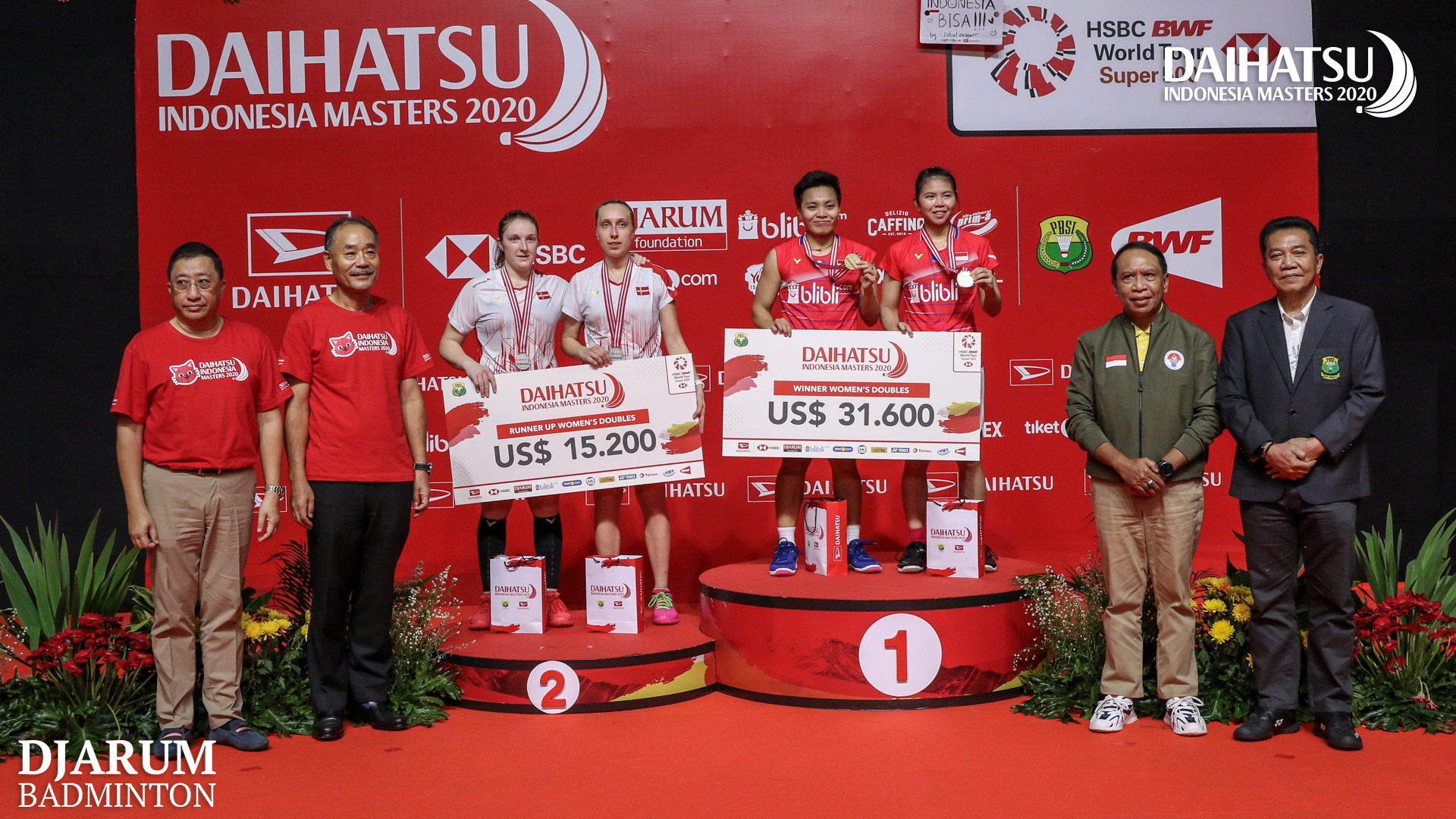 Pemberian Medali dan Hadiah kepada Runner Up dan Juara Ganda Putri Daihatsu Indonesia Masters 2020