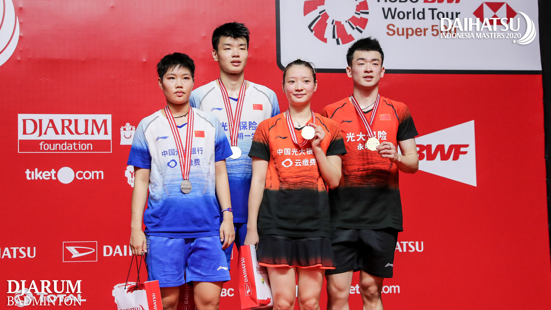 Podium Runner Up WANG Yi Lyu/HUANG Dong Ping (China) dan Juara Ganda Campuran ZHENG Si Wei/HUANG Ya Qiong (China)Daihatsu Indonesia Masters 2020