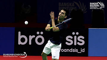 Lakshya Sen (IND) mengembalikan shuttlecock