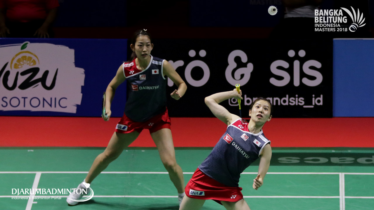 Nami Matsuyama/Chiharu Shida (JPN) bersiap menyambar pengembalian tanggung