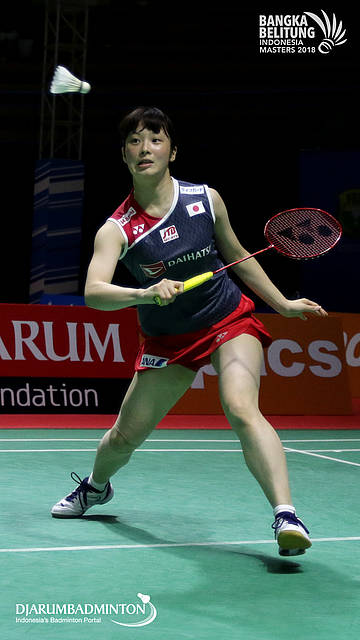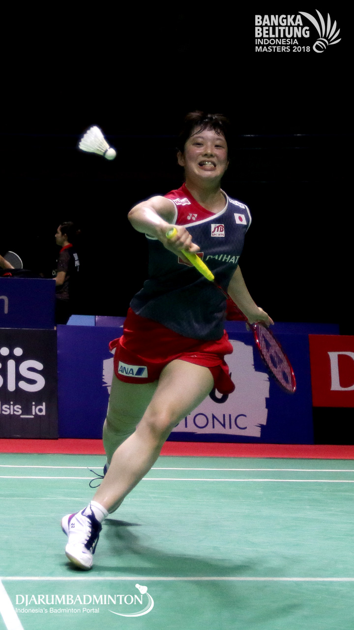 Minatsu Mitani (JPN) mengembalikan shuttlecock